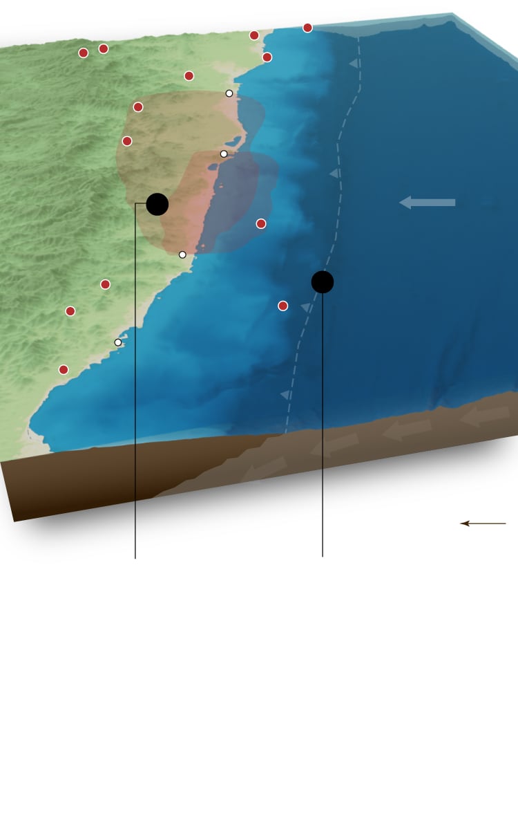 The area known as the Guerrero Gap is an 110 kilometers area long where no major earthquake has been recorded for more than a century, despite being located in a zone of high seismic activity. In a country where every year more than a thousand earthquakes of magnitude greater than 3.5 are registered, this place attracts the attention of experts: how much energy has accumulated in this place and when will it detonate?
