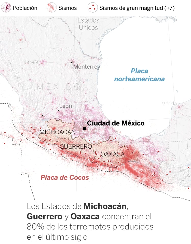 Los Estados de Michoacán, Guerrero y Oaxaca concentran el 80% de los terremotos producidos en el último siglo